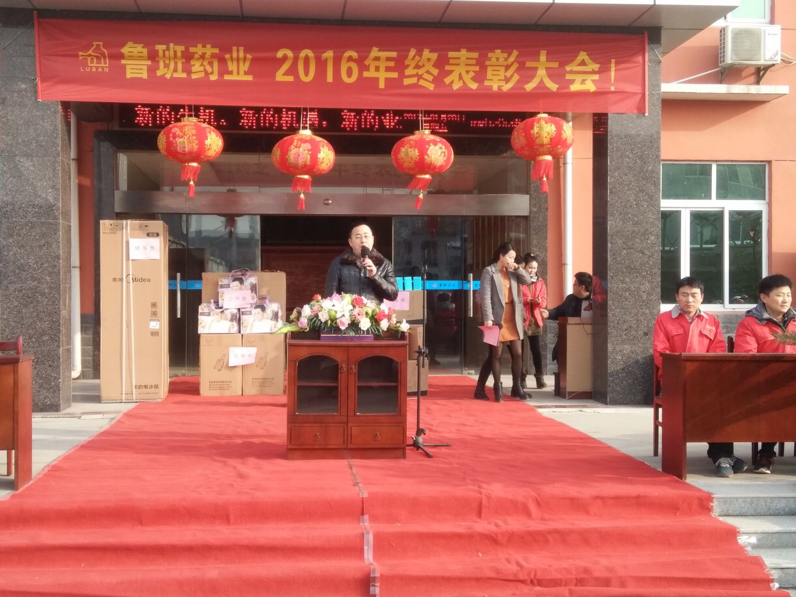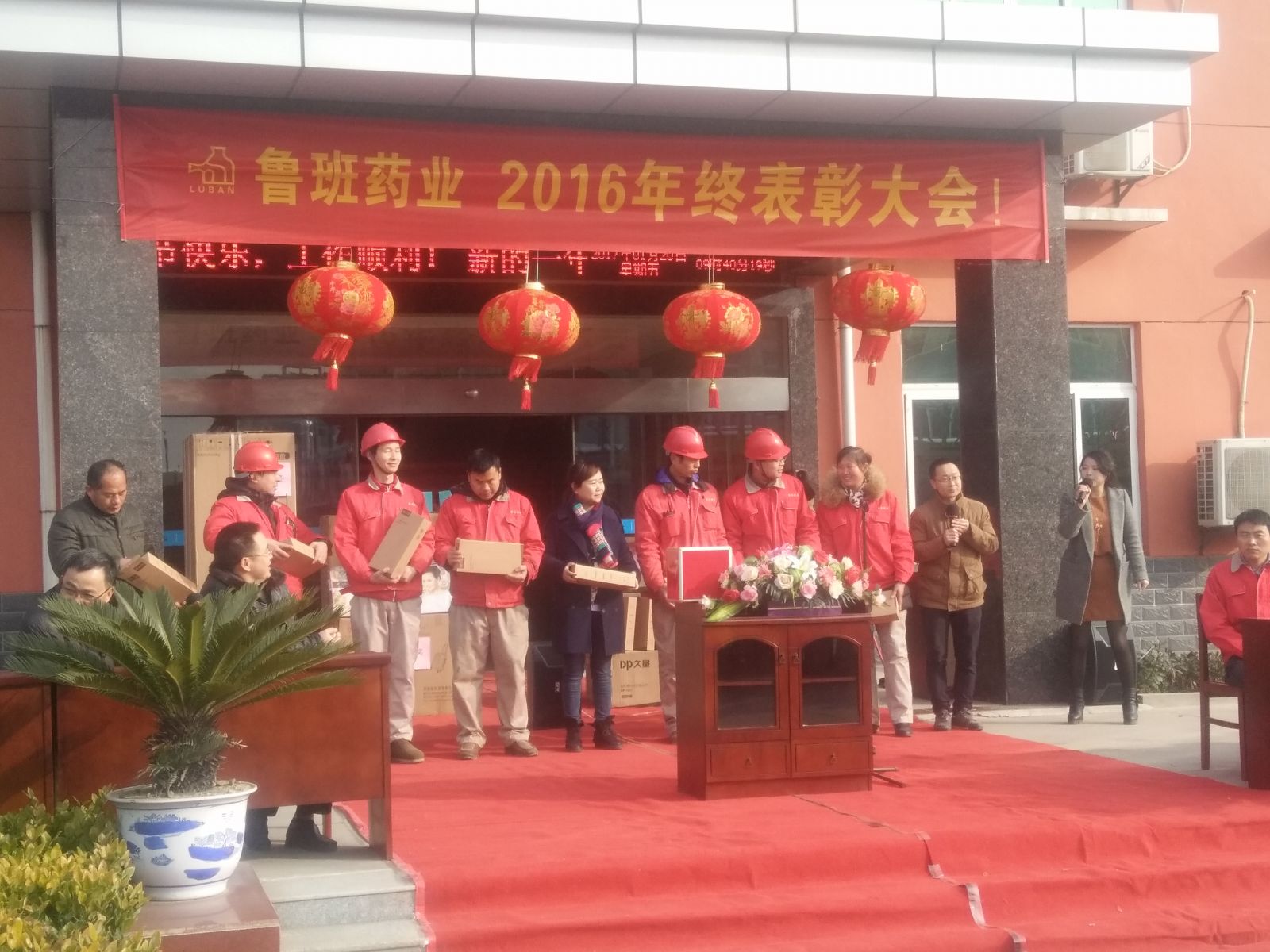 喜鵲登枝迎新歲,金雞起舞報福音。2017年1月20日,黃岡魯班藥業(yè)股份有限公司2016年終表彰大會在公司廣場隆重召開。出席本次大會的嘉賓有:魯班藥業(yè)總經(jīng)理楊小龍,副總經(jīng)理兼總工程師張建軍,副總經(jīng)理陳潛,總經(jīng)理助理楊鐵波,質(zhì)量總監(jiān)謝桃林以及魯班藥業(yè)全體員工,大家歡聚一堂,共同回首過去,展望未來。