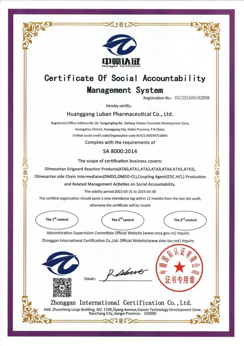 黃岡魯班藥業(yè)股份有限公司(以下簡(jiǎn)稱“公司”)通過了SA8000:2014社會(huì)責(zé)任管理體系審核認(rèn)證,并于近日獲得了該體系認(rèn)證證書。